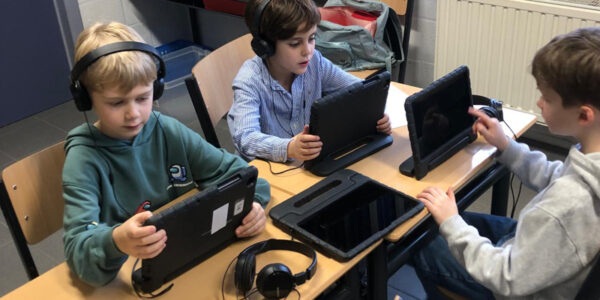 We konden zelf filmpjes opnemen en hij toonde ons hoe hij geluidjes of muziek kon toevoegen aan een filmpje, hoe hij filmjes in de juiste volgorde kon plaatsen. Wisten jullie dat hij voor 4 min. Tv een hele dag moest