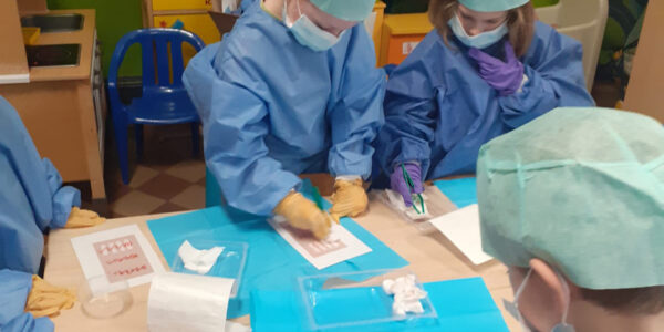 De derde kleuterklas kreeg bezoek van de mama van Miles. Zij werkt mee met de dokters tijden een operatie. Wij oefenden dit ook zoals echte chirurgen. Een dikke dank u wel aan beide ouders om het thema zo leerrijk te