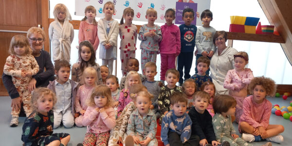 Wij steunen Bednet. Vandaag kwamen de leerlingen in pyjama naar school om Bednet te steunen. Bednet is er voor leerlingen die ziek zijn en niet naar school kunnen. Zij kunnen dankzij Bednet les volgen alsof ze echt in de klas
