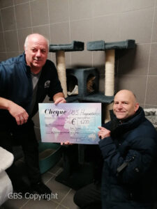 Opbrengst kerstdrink werd aan de voorzitter van het dierenasiel overhandigd.
